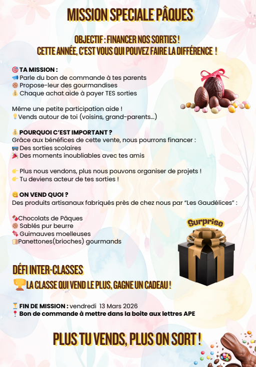 À l’occasion de Pâques, l’Association des Parents d’Élèves lance la Mission spéciale Pâques 🍫