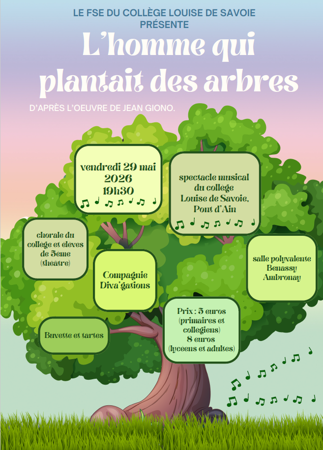 "L'homme qui plantait des arbres" est le titre du futur spectacle musical de la chorale du collège et d'un groupe d'élèves de 5ème qui vont le théâtraliser.